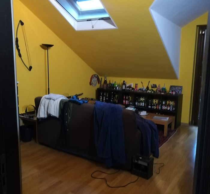 Una prima bozza per definire la distribuzione e l’assegnazione degli spazi notte al primo piano, considerando che il sottotetto era mansardato e avevamo già degli arredi da ricollocare e un budget da rispettare.